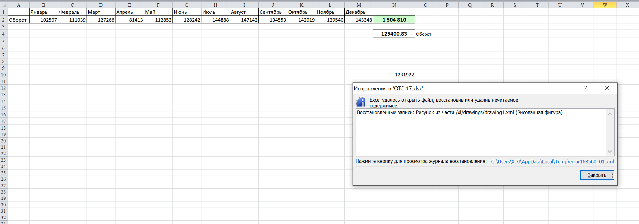 Примерно с месяц в Exel 2010 не работает раздел (активен) диаграммы, при нажатии любого подменю ничего не происходит. При открытии файлов с ранее созданными графиками, появляется сообщение- "в книге обнаружено содержимое которое не удалось прочитать". При восстановлении график удаляется. Переустанавливал несколько раз, более того переустановил "вчистую" Вин10, ничего не помогает. Раздел не работает на любом этапе, до установки последних обновлений и после. Все другие разделы- таблицы иллюстрации и т.д. справно работают.