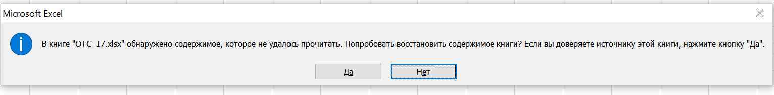 -какое первичное Уведомление выдаёт Excel при попытке открыть мой файл-пример?