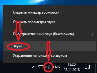 заходим в настройки звука