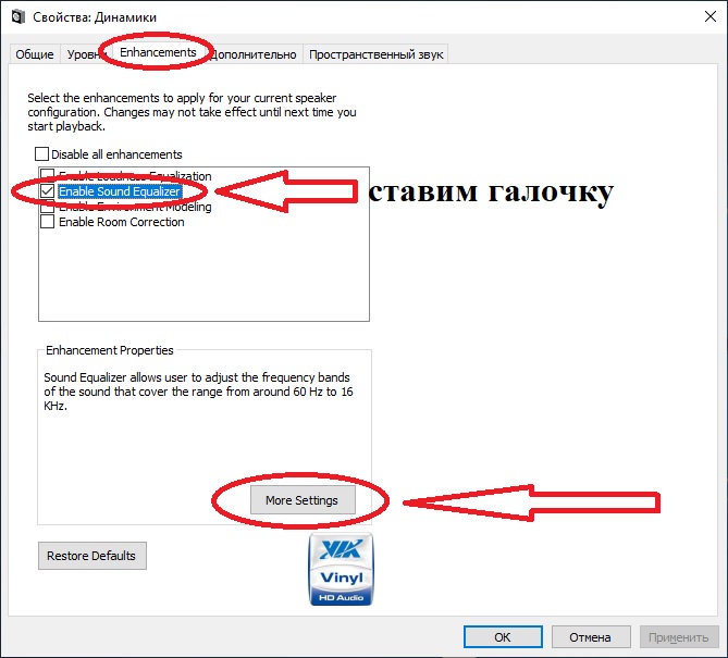 включаем эквалайзер