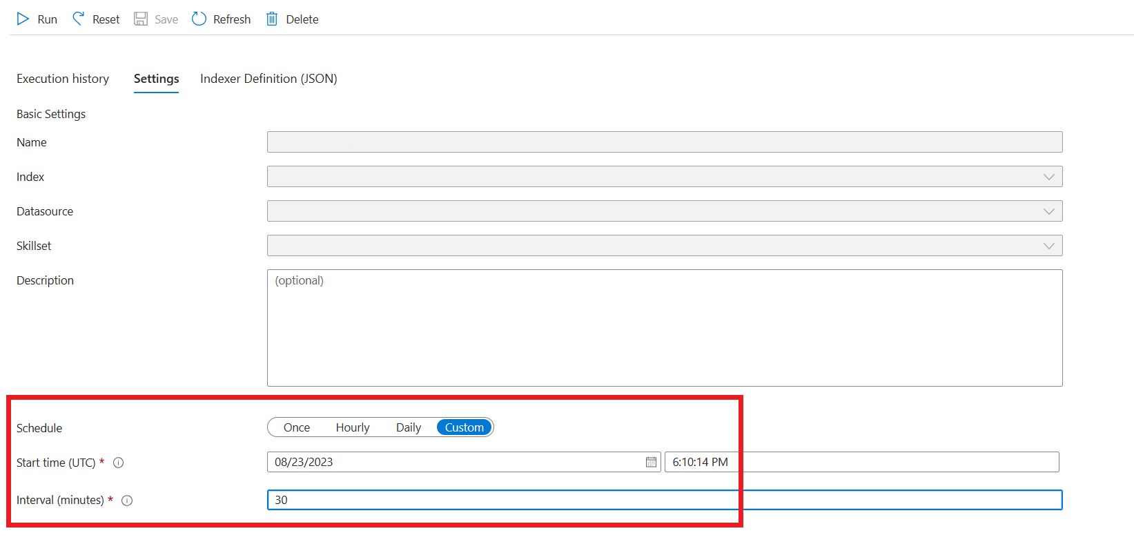 При приеме данных в службу "Поиск ИИ Azure" можно изменить следующие дополнительные параметры в API приема или студии.