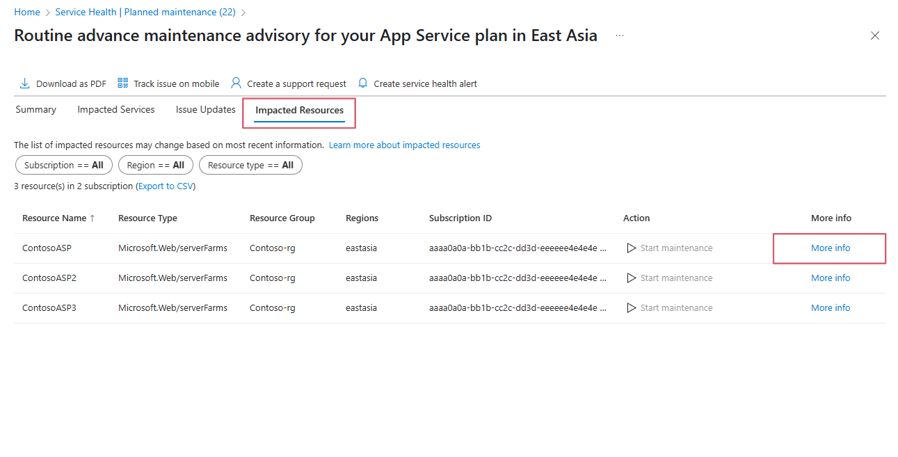 Регулярное обслуживание предоставляет последние обновления платформы и службы. Трудно предсказать, как обслуживание влияет на отдельные приложения, поэтому уведомления предоставляют общие диапазоны времени. Эти диапазоны отражают общую операцию во всех ресурсах, а не определенные возможности на уровне приложений. Приложения возобновляют работу после проведения обслуживания на недавно обновленных компьютерах и продолжают функционировать без перебоев. Простоев нет, когда запросы и трафик не обслуживались.