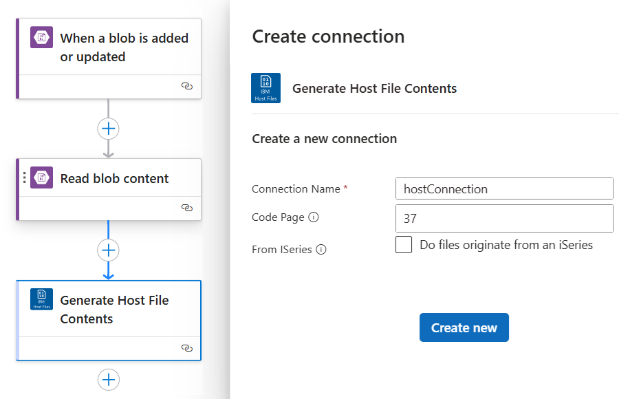 Для клиентов, заинтересованных в доступе и использовании баз данных в средах основных и специализированных систем, таких как SQL Server или Azure Cosmos DB, коннектор IBM Host File предоставляет возможность создавать файлы в формате JSON. Этот подход позволяет использовать файлы узлов в облачной базе данных и отправлять данные обратно в качестве файла узла в мейнфрейм или среды среднего порядка.