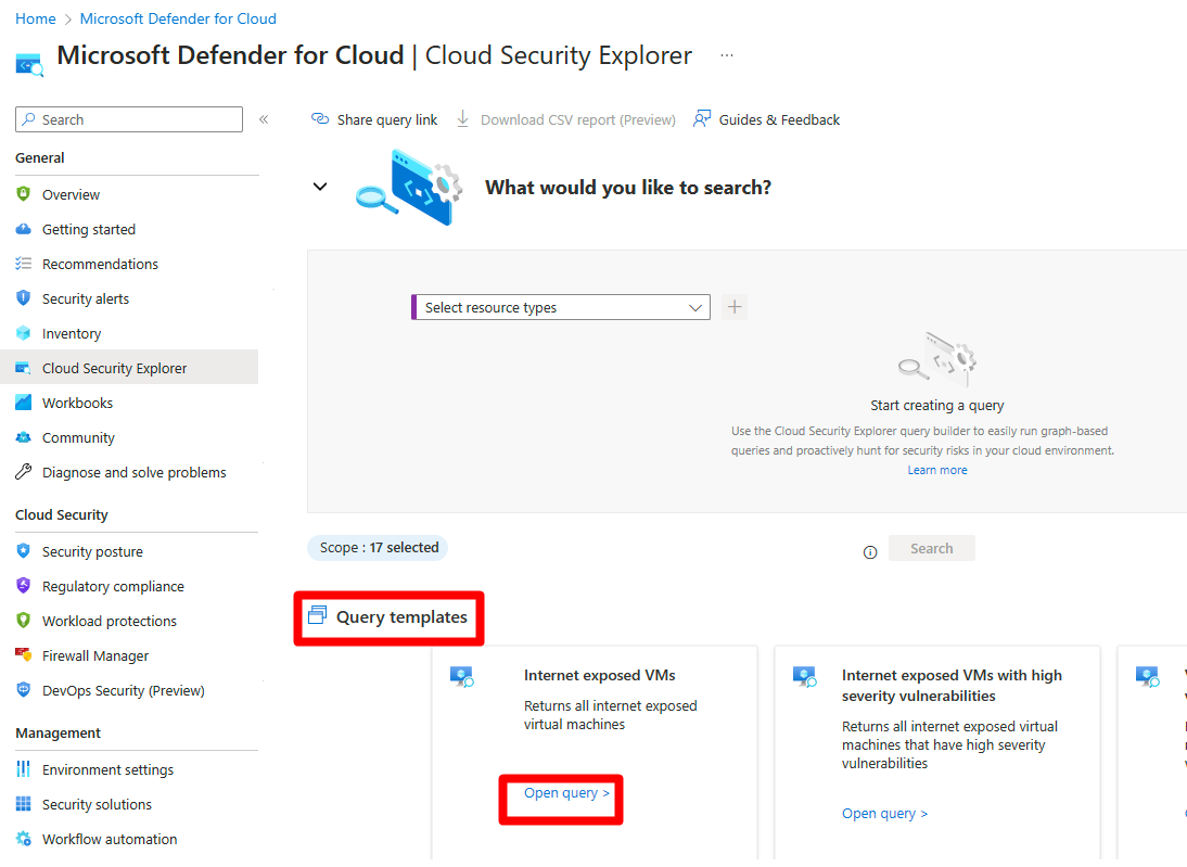 Перейдите в Microsoft Defender для облака> Cloud Security Explorer.