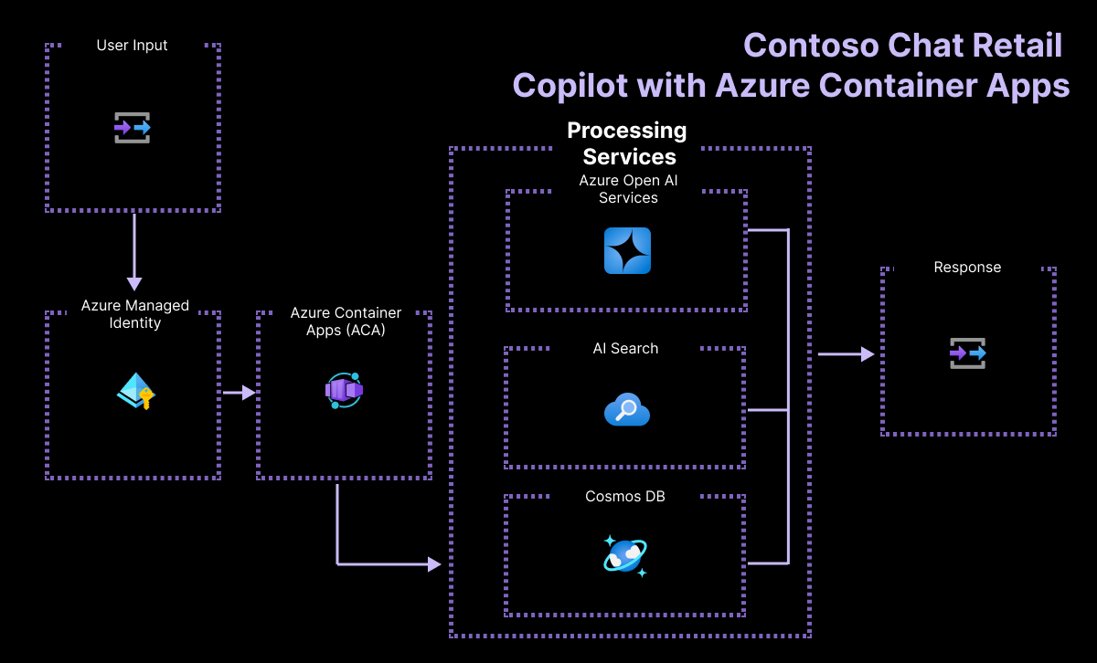 Этот шаблон реализует Contoso Chat — розничное решение копилот для Contoso Outdoor, использующее шаблон проектирования извлечения с дополнением генерацией для обоснования ответов чат-бота на основе данных о продуктах и клиентах розничного продавца. Клиенты могут задавать вопросы с веб-сайта на естественном языке и получать соответствующие ответы с потенциальными рекомендациями на основе истории покупки - с ответственной практикой ИИ для обеспечения качества и безопасности ответов.