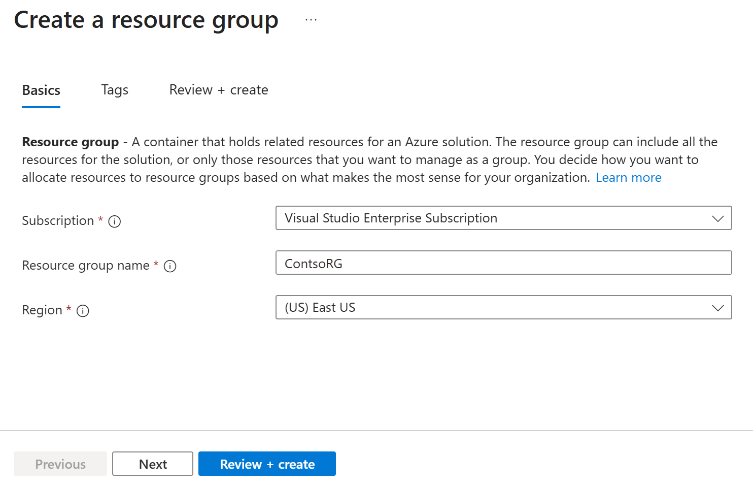 Выберите группу ресурсов, созданную на предыдущем шаге.