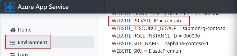 Убедитесь, что значение для WEBSITE_PRIVATE_IP является IP-адресом из подсети, настроенной для Azure Monitor для решений SAP.