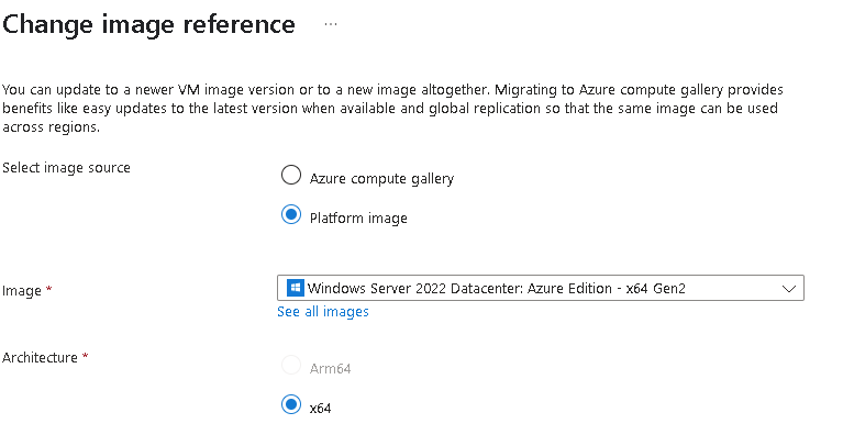Изменение образа операционной системы набора виртуальных машин пересоздает диски ОС для всех экземпляров виртуальных машин из нового образа. Это изменение означает, что все данные или пользовательские конфигурации, хранящиеся на текущих дисках ОС, теряются после обновления. Перед продолжением убедитесь, что необходимо создать резервную копию любой важной информации.