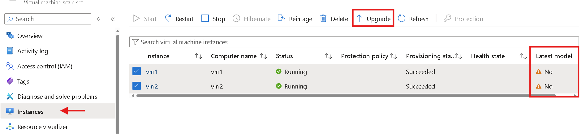 Обновите экземпляры виртуальной машины вручную, если для масштабируемого набора задан единый