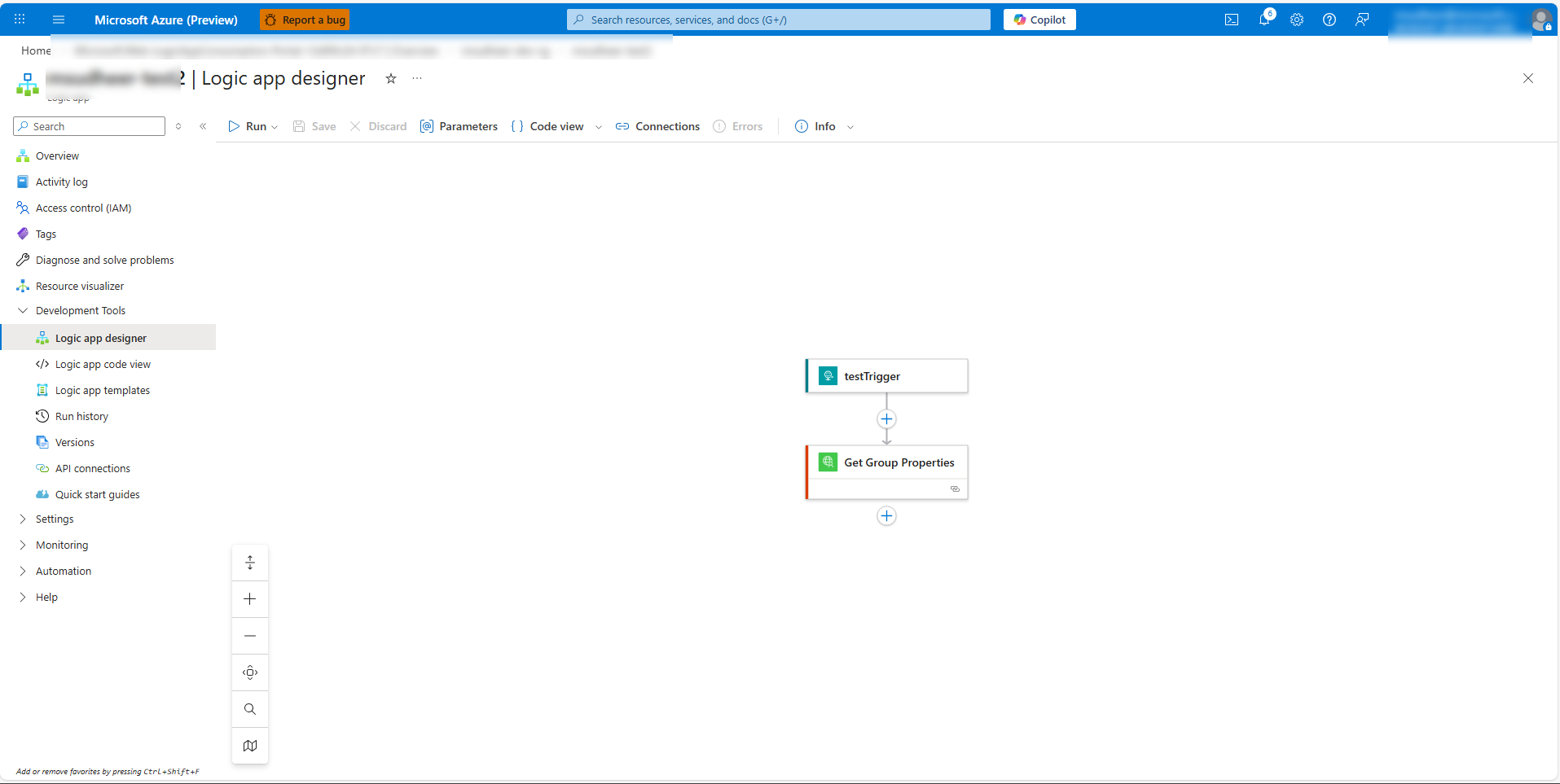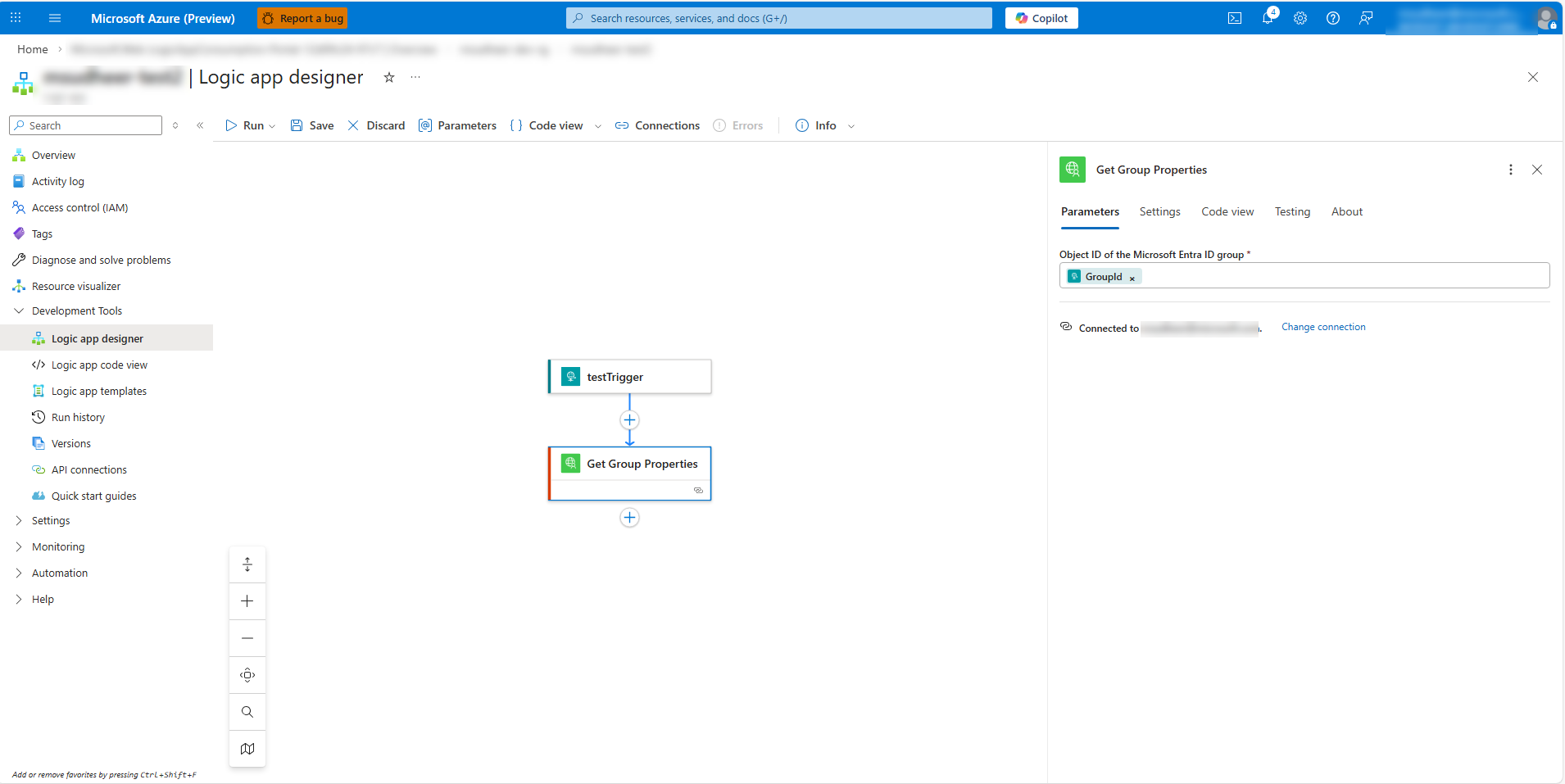 groupIdбыли получены три свойства:GroupId,NameиMailиз Entra.Выберите Вид на портале Azure, чтобы просмотреть рабочий процесс в Azure.