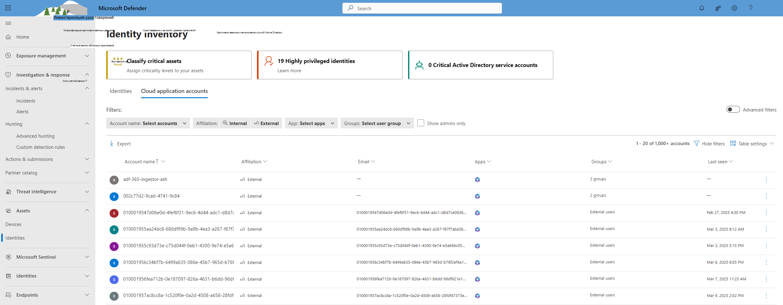 Microsoft Defender for Cloud Apps позволяет просматривать учетные записи из подключенных приложений. После подключения Defender for Cloud Apps к приложению с помощью соединителя приложений Defender for Cloud Apps считывает сведения об учетной записи, связанные с подключенными приложениями. Вкладка Учетные записи облачных приложений в списке удостоверений позволяет исследовать эти учетные записи, разрешения, группы, в которые они входят, их псевдонимы и приложения, которые они используют. Кроме того, когда Defender for Cloud Apps обнаруживает новую учетную запись, которая ранее не отображалась в одном из подключенных приложений( например, в действиях или совместном использовании файлов), учетная запись добавляется в список учетных записей этого приложения. Это позволяет просматривать действия внешних пользователей, взаимодействующих с облачными приложениями.