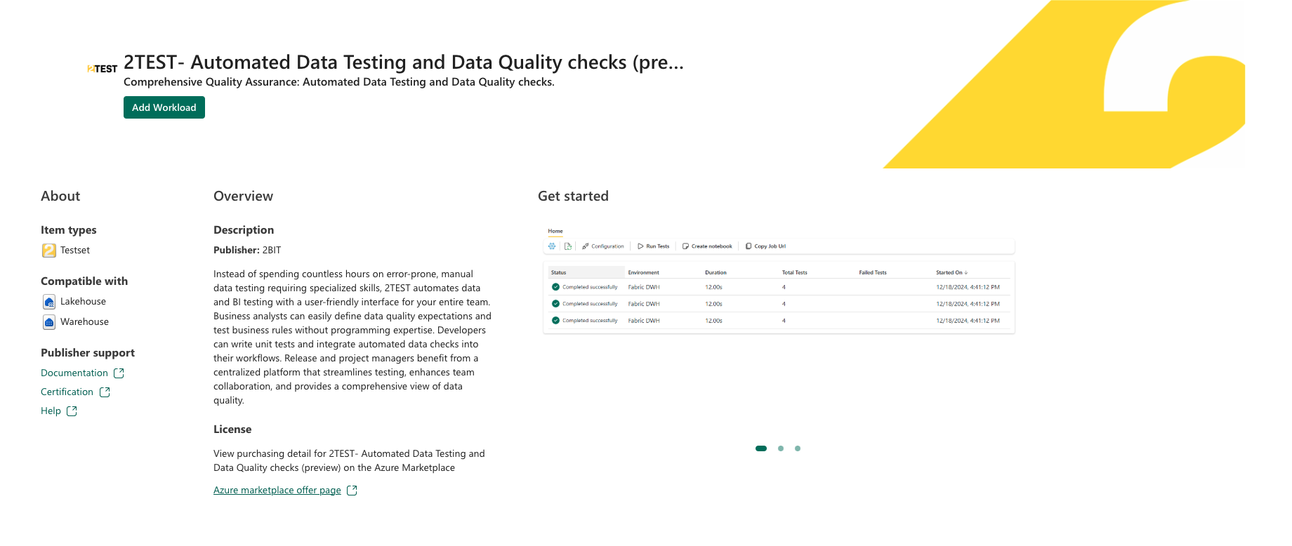 2TEST: полная рабочая нагрузка проверки качества, которая автоматизирует тестирование и проверки качества данных.