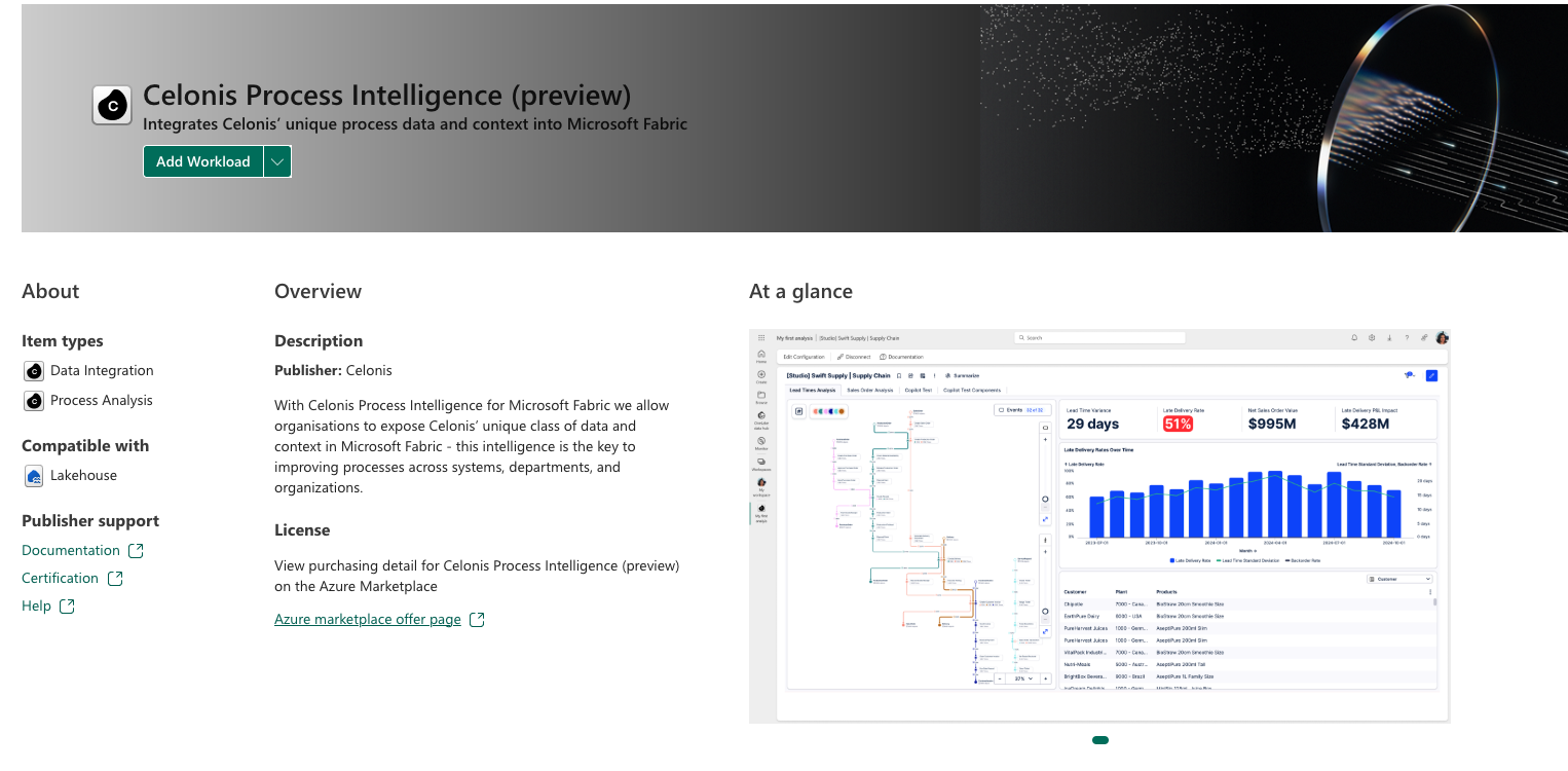 Celonis Process Intelligence: позволяет организациям предоставлять уникальный класс данных и контекста Celonis в Microsoft Fabric.