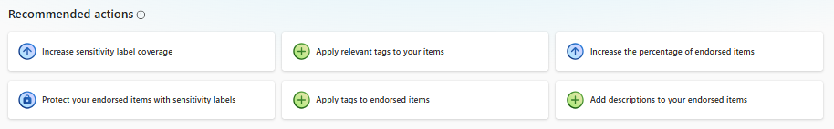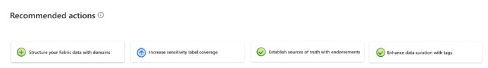 - Рекомендуемые действия , которые можно предпринять для улучшения системы управления данными. Рекомендуемые действия сопровождаются рекомендациями, которые помогут вам выполнить их.