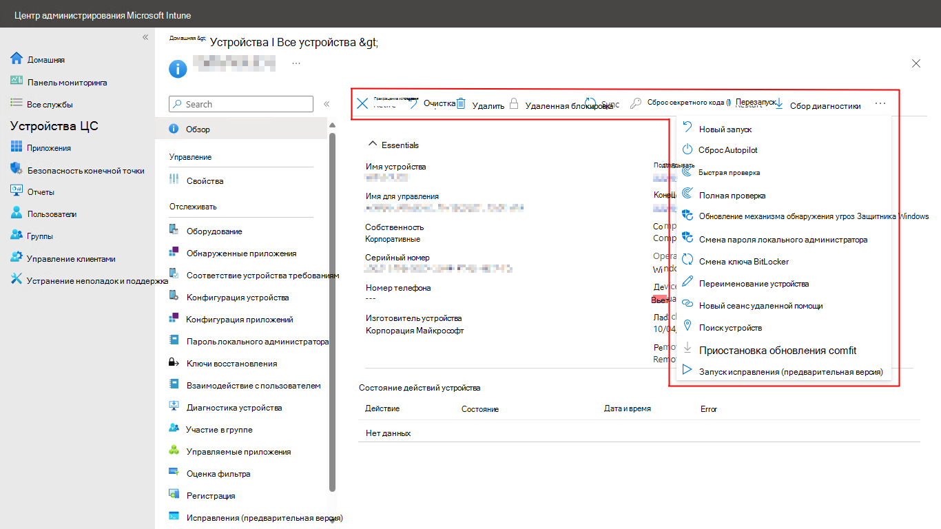 Дополнительные сведения об удаленных действиях в Intune см. в разделе Удаленные действия.