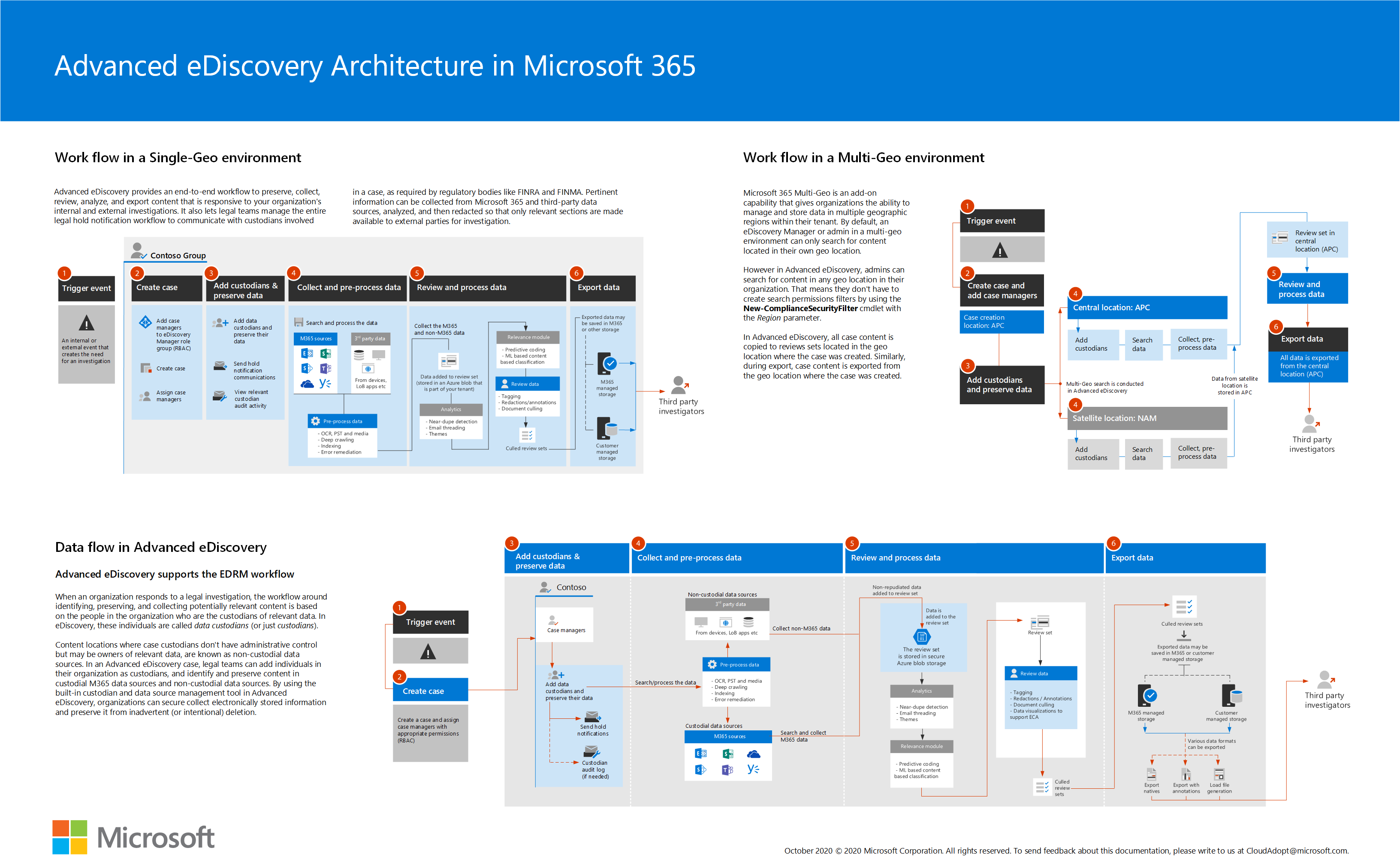 Комплексный рабочий процесс eDiscovery (Premium) и поток данных, в том числе в средах Microsoft 365 Multi-Geo.