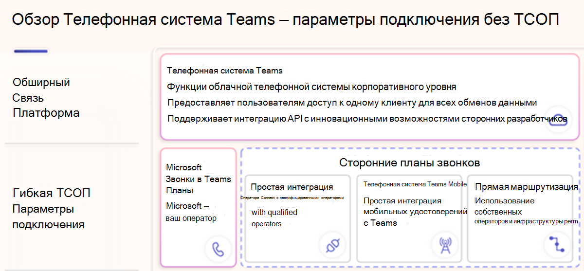 Ниже перечислены основные аспекты четырех моделей подключения ТСОП для Teams.
