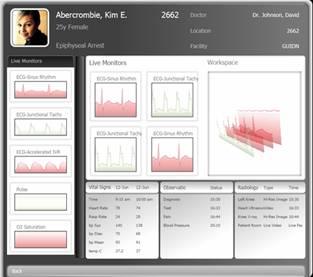 Платформа Windows Presentation Foundation призвана упростить разработку многофункциональных приложений, которые было бы трудно или вообще невозможно создать на платформе Windows Forms и для разработки которых потребовалось бы множество других, трудно интегрируемых между собой, технологий. Например, для показанного ниже медицинского приложения требуется сочетание двумерной и трехмерной графики с модифицированным элементом формы и интерактивными визуальными элементами, которые призваны помочь пользователю лучше понимать и оценивать данные. Из приведенной ниже таблицы видно, что до появления платформы WPF для создания приложения с таким интерфейсом могло потребоваться пять или даже больше разных наборов технологий.