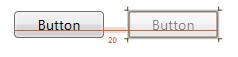На рис. 9 показаны линии привязки элементов управления, которые отображаются, когда границы одного элемента выровнены с границами другого. Число 20 — это количество пикселей, разделяющих две кнопки.