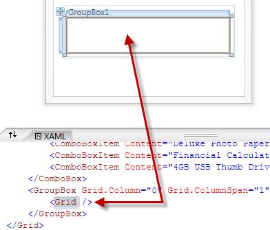 - Щелкните внутри элемента GroupBox, чтобы выбрать элемент Grid элемента GroupBox.