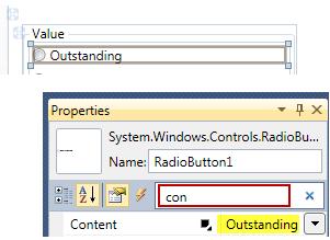 - В окне свойств присвойте свойству Content трех элементов RadioButton следующие значения: