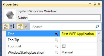 Измените значение свойства Title на First WPF Application («Первое приложение WPF»).