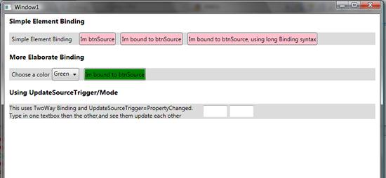 Когда вы определились с этим, все становится просто как дважды два. В состав демонстрационного решения входит проект BindingToUIElements, который при выполнении выглядит так: