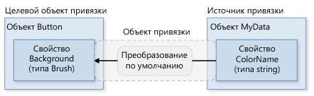 Синтаксис привязки данных В классе Binding могут использоваться различные свойства. У меня нет времени рассмотреть их все, но я попытаюсь пройтись по самым типичным элементам синтаксиса. Чаще всего привязки задаются в коде XAML, поэтому я сосредоточусь на синтаксисе XAML. Однако следует отметить, что все, что можно сделать в XAML, также можно реализовать и в коде программной части на C# или VB.NET. Так что давайте изучим базовый синтаксис (более сложные вопросы оставим для следующих разделов). Самая простая форма привязки — это привязка к значению существующего элемента (она также будет более подробно рассмотрена ниже). Я хотел познакомить вас с синтаксисом и вернуться назад, чтобы показать, что делать со свойствами Binding.Mode и Binding.UpdateSourceTrigger. Это, вероятно, одна из самых простых привязок. В этом примере используются две кнопки. Свойство Background первой кнопки (btnSource) обладает значением Yellow. Вторая кнопка использует первую кнопку (btnSource) в качестве источника привязки, при этом значение Background первой кнопки (btnSource) используется для задания свойства Background второй кнопки. <Button x:Name="btnSource" Background="Yellow" Width="150" Height="30">Yellow BUtton</Button> <Button Background="{Binding ElementName=btnSource, Path=Background}" Width="150" Height="30">I am bound to be Yellow Background</Button> Предельно просто. А теперь давайте посмотрим, как использовать свойства Binding.Mode и Binding.UpdateSourceTrigger в синтаксисе привязки. И тут все довольно просто. Мы просто добавляем в выражение привязки дополнительное свойство и его требуемое значение. <TextBox x:Name="txtSource" Width="150" Height="30"/> <TextBox Width="150" Height="30" Text="{Binding ElementName=txtSource, Path=Text, Mode=TwoWay, UpdateSourceTrigger=LostFocus }"/> Важное примечание Помните, в части 2 я говорил, что привязка — это расширение разметки? Именно поэтому анализатор XAML знает, как обрабатывать разделы { }. Но это фактически всего лишь собирательное свойство, которое (при желании) можно выразить с помощью более подробного синтаксиса, приведенного ниже. <Button Margin="10,0,0,0" Content="Im bound to btnSource, using long Binding syntax"> <Button.Background> <Binding ElementName="btnSource" Path="Background"/> </Button.Background> </Button> Вы можете выбрать синтаксис, который вам больше нравится. Лично я предпочитаю синтаксис { }, однако при использовании такого синтаксиса функция Intellisense в Visual Studio не работает. Привязка к элементам интерфейса пользователя При настройке привязки необходимо учитывать несколько моментов.