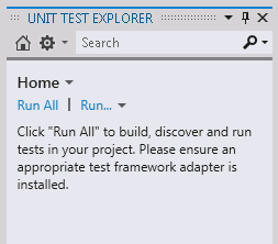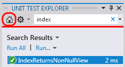 - Нажмите кнопку Home (Главная) в окне Unit Test Explorer (Обозреватель модульного тестирования), чтобы просмотреть все тесты.