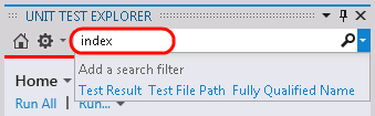 - В поле Search (Поиск) в верхней части окна Unit Test Explorer (Обозреватель модульного тестирования) введите слово index и обратите внимание на доступные фильтры поиска.