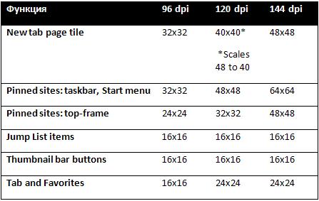Честно говоря, хотя иконки и кешируются, не вижу особого смысла добавлять в файл картинки размера больше 64х64, так как это даст ощутимый прирост к весу вашей страницы. Но это не означает, что вы не можете этого сделать и включить иконку хоть до 256х256px J Также, в зависимости от используемого разрешения экрана используемый размер иконки может несколько варьироваться: