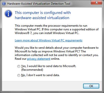 В предыдущих частях цикла, посвященного совместимости приложений для ИТ-специалистов, мы познакомились с основными причинами несовместимости приложений в Windows 7 и обсудили, как изменения на уровне ядра операционной системы могут повлиять на работоспособность приложений, рассмотрели инструменты и способы разрешения проблем совместимости приложений с операционной системой Windows 7 и познакомились с механизмом Program Compatibility Assistant, который используется пользователями для решения основных проблем несовместимости приложений. Мы также познакомились с основами использования набора инструментов Application Compatibility Toolkit, предназначенного для ИТ-специалистов. В заключительной части данного цикла мы рассмотрим использование механизмов виртуализации для решения проблем с обеспечением совместимости приложений, написанных для предыдущих версий операционной системы Windows. Режим Windows XP ModeРежим Windows XP Mode предназначен для запуска в Windows 7 приложений, написанных для предыдущих версий операционной системы – Windows XP. В отличие от описанных ранее в данном цикле способов обеспечения совместимости, данный подход основан на использовании механизмов виртуализации – приложения работают в специальной версии виртуальной машины, на которой установлена операционная система Windows XP. Данный режим предназначен, в первую очередь, для тех сценариев, когда невозможно обеспечить совместимость приложений каким-либо описанными в данном цикле способами, либо для компаний, которые не могут решить вопросы совместимости приложений собственным штатом ИТ-специалистов. Режим Windows XP Modeбазируется на клиентском средстве виртуализации Microsoft Virtual PC и специальной версии виртуальной машины с установленной в ней версией Microsoft Windows XP SP3. Оба компонента доступны для бесплатной загрузки с сайта Microsoft и могут использоваться в операционной системе Microsoft Windows 7 в изданиях Professional (Профессиональная), Ultimate (Максимальная) или Enterprise(Корпоративная). Обратите внимание на то, что режим Windows XP Modeпредназначен, в основном, для обеспечения совместимости корпоративных приложений и, в ряде случаев, может не поддерживать графические приложения, игры и пр., приложения с интенсивным потреблением графических ресурсов. Установка режима Windows XP ModeПрежде чем приступить к установке режима Windows XP Mode, следует выполнить ряд предварительных действий, которые позволят вам убедиться в том, что компьютер, на котором планируется использование данного режима, соответствует аппаратным и программным требованиям – в нем присутствует аппаратная поддержка механизмов виртуализации (HAV, Hardware-Assisted Virtualization) и он работает под одной из поддерживаемых версий операционной системы Windows 7. Наличие поддержки аппаратной виртуализации позволяет использовать режим Windows XP Mode наиболее оптимальным образом. Отметим, что основная масса современных компьютеров поставляется с аппаратной поддержкой виртуализации, но она может быть отключена на уровне BIOS. Что проверить, поддерживает ли процессор аппаратную виртуализацию, следует выполнить следующие шаги: