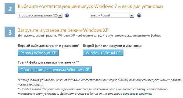 После того как мы убедились в том, что компьютер поддерживает аппаратную виртуализацию и она включена (либо установлено специальное обновление для компьютеров, не соответствующих этому требованию) и установленная версия операционной системы Windows 7 является одним из поддерживаемых изданий - Professional, Ultimate или Enetrprise, можно приступить к загрузке и установке компонентов Windows XP Mode. Для этого необходимо выполнить следующие действия: