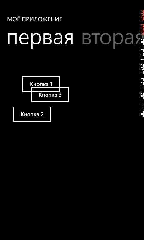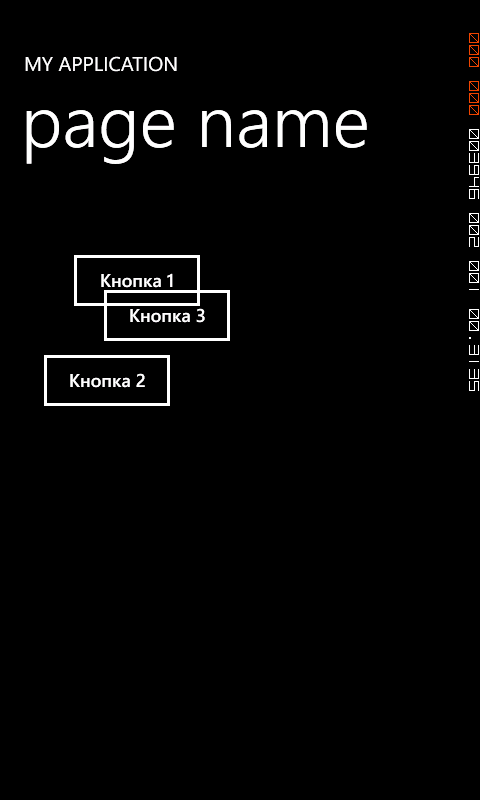Как видно, элементы позиционированы абсолютным образом. Обратите внимание, что для одной из нопок указано прикрепленное свойство ZIndex, которое указывает как один элемент перекрывает другой элемент. Элемент Canvas полезен, когда элементы внутри не должны перемещаться, окно приложения менять ориентацию, а также, когда вам необходимо по тем или иным причинам позиционировать элементы интерфейса приложения абсолютным образом. В противном случае, работать c Canvas может быть сложнее, чем с такими элементами, как StackPanel или Grid.