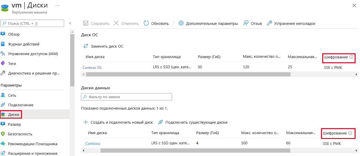 В разделе Диск ОС убедитесь, что для диска ОС задан тип шифрования.