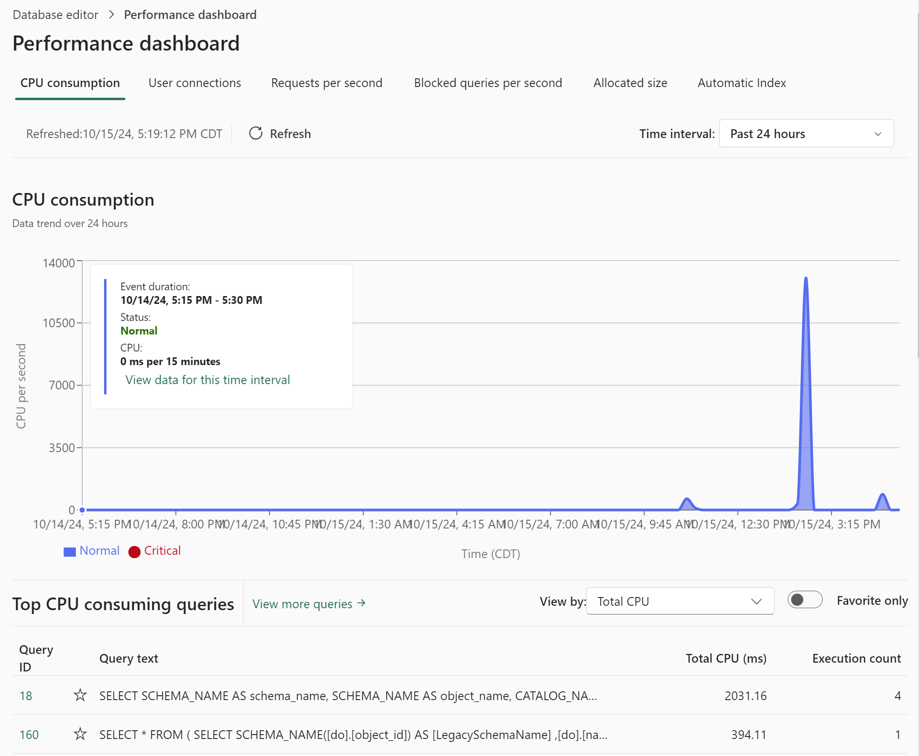 Панель мониторинга производительности в Fabric База данных SQL упрощает взаимодействие с пользователем, удаляя сложности мониторинга и операций. Он позволяет пользователям полностью использовать возможности ядра СУБД SQL, обслуживая различные рабочие нагрузки в Fabric.
