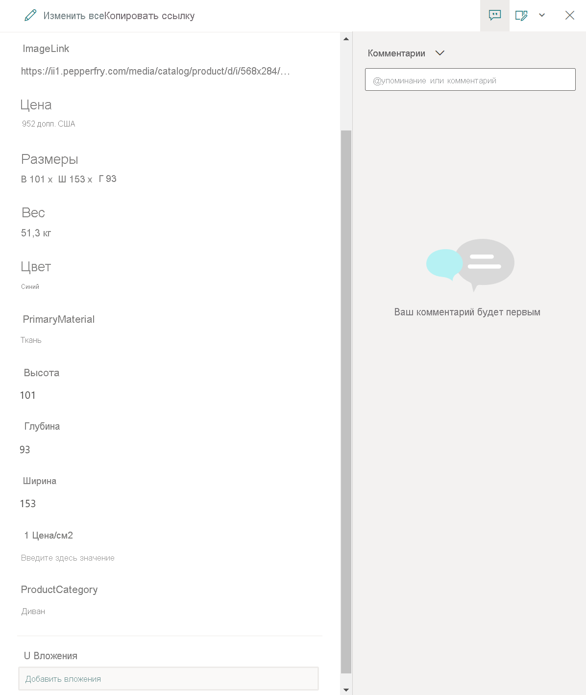 Выберите элемент в списке, а затем нажмите кнопку "Добавить вложения". Выберите трехмерную модель (GLB-файл) или Образ (.jpg файл) в пользовательской папке Power Apps. Выполните ту же процедуру для всех элементов в списке.