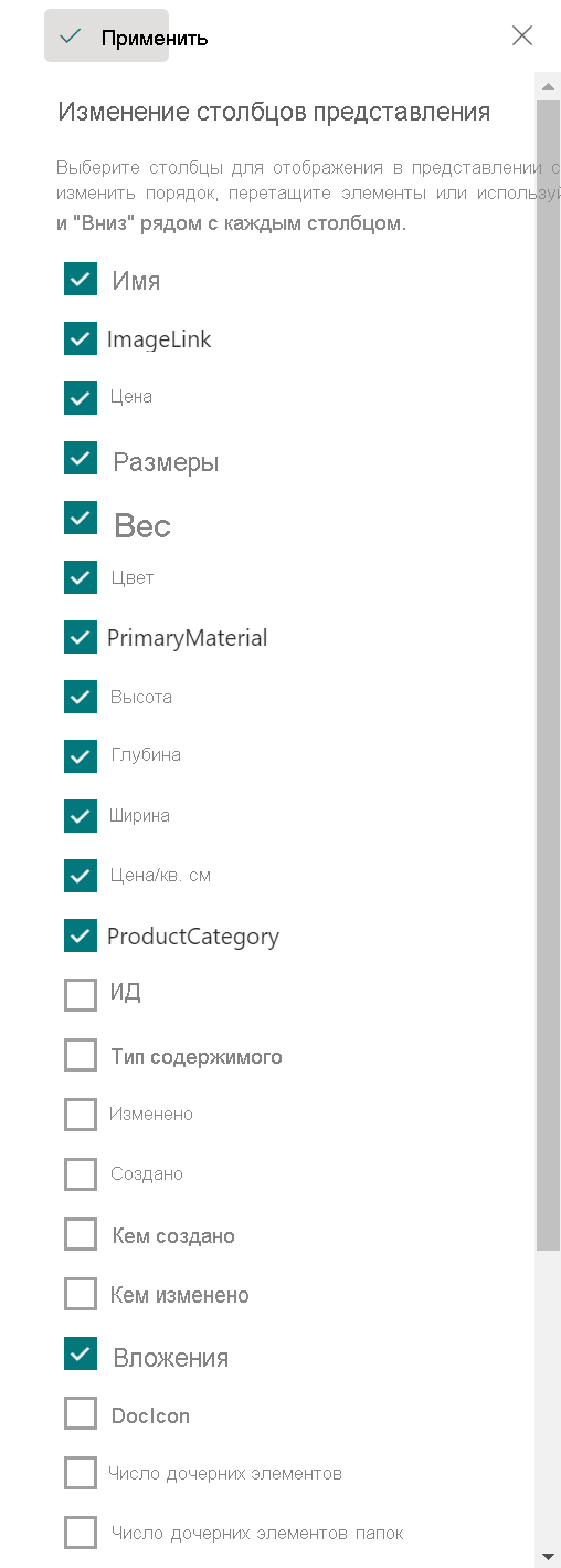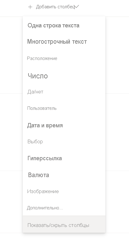 В созданном списке SharePointс именем Easy Sales выберите "+ Добавить столбец " и выберите "Показать и скрыть столбцы".