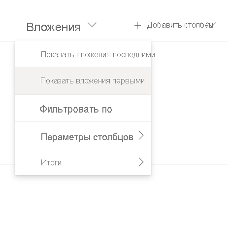 Выберите раскрывающийся список рядом со столбцом "Вложения" , а затем сначала выберите "Показать вложения". Мы хотим, чтобы это было помещено на первое место для простого доступа.