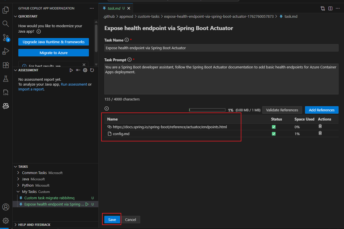 task.mdfile by following the predefined steps in the GitHub Copilot app modernization extension.In the opened