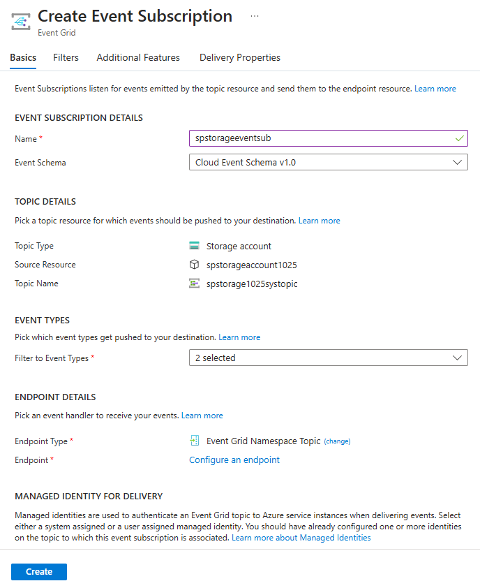 Now, you're ready to create an event subscription to the system topic for the source storage account using the namespace as an endpoint.