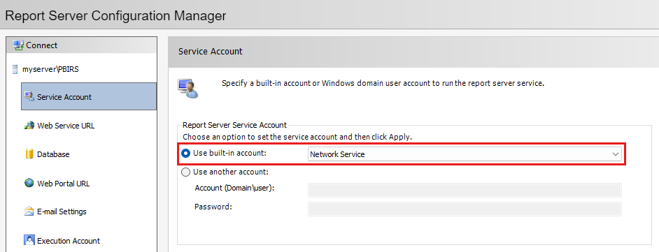 Ďalšie informácie nájdete v téme Konfigurácia konta služby servera zostáv (Správca konfigurácie servera zostáv).