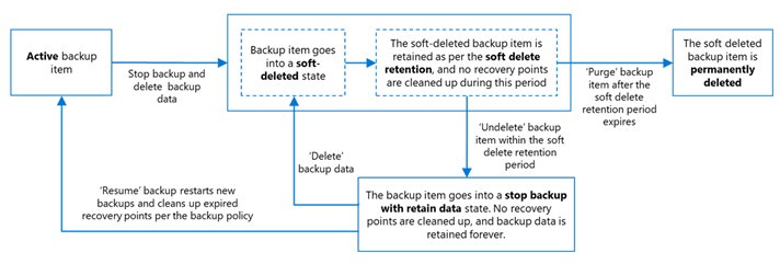 | Azure portal | Backup items move to a soft-deleted state. | Backup items move to a soft-deleted state. |