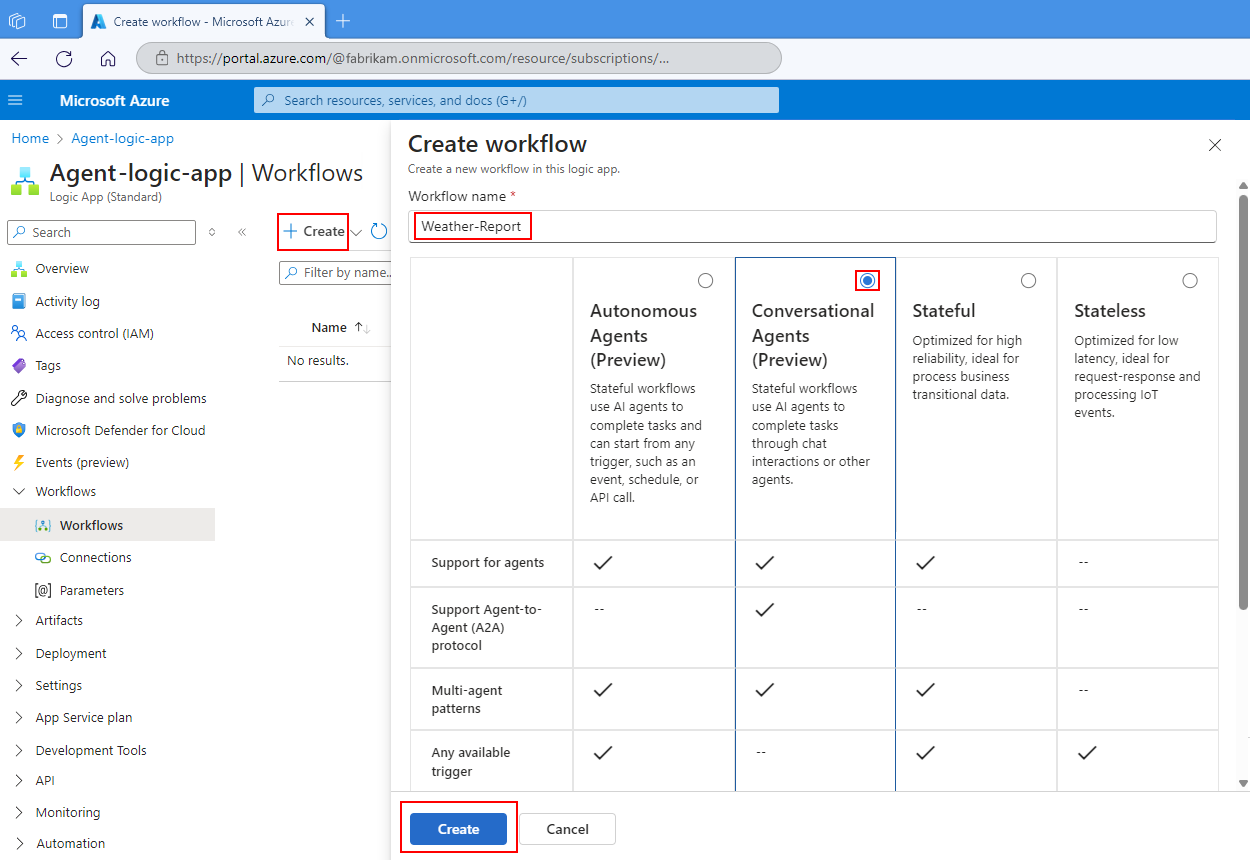 Consumption conversational agentic workflows are in preview and subject to the Supplemental Terms of Use for Microsoft Azure Previews.