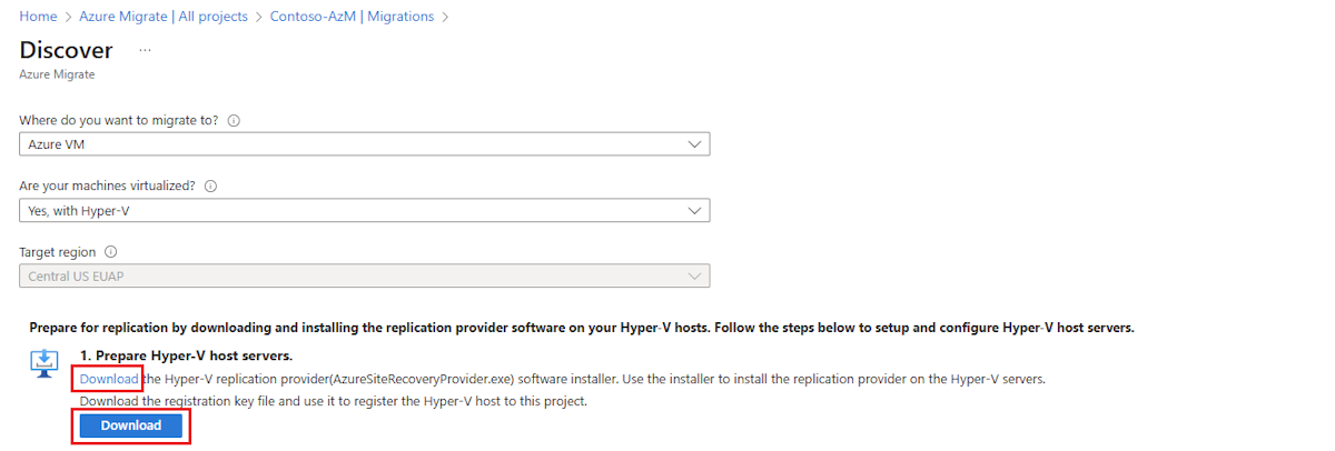 In Prepare Hyper-V host servers, download the Hyper-V Replication provider and the registration key file.