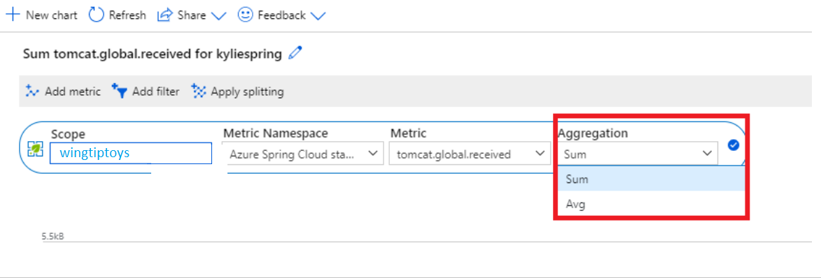 The aggregation type indicates how to aggregate metric points in the chart by time. There's one raw metric point every minute, and the pre-aggregation type within a minute is pre-defined by metrics type.