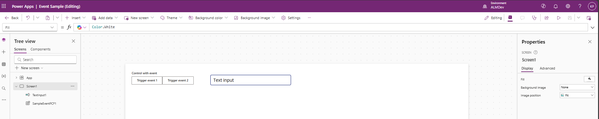 pac pcf init -n EventSample -ns SampleNamespace -t field -fw react -npmEdit the manifest to add the new events