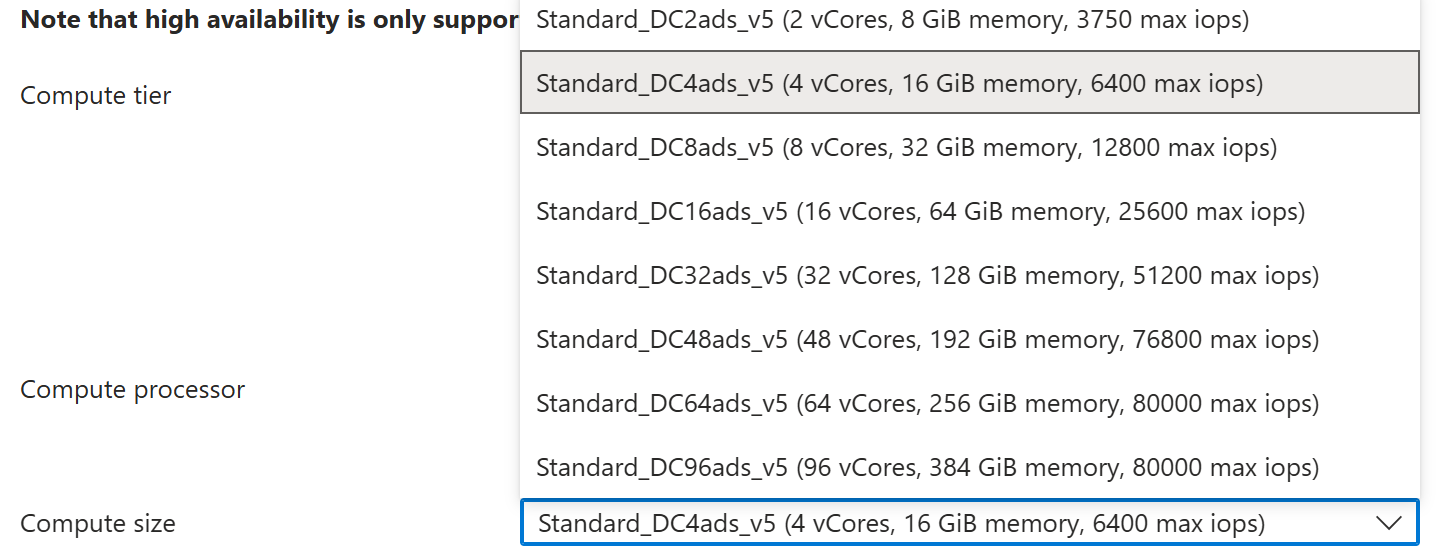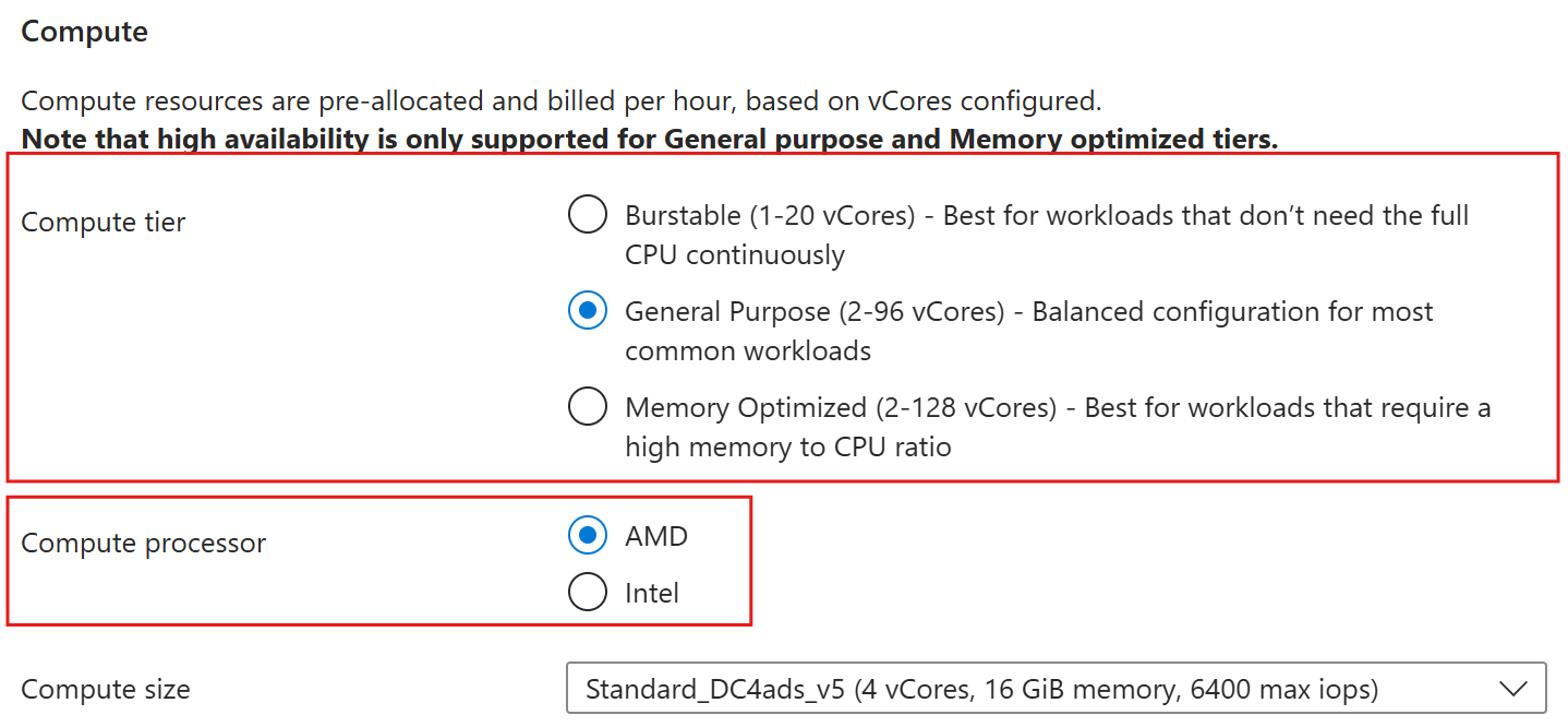 - Only AMD SEV-SNP processors are supported. Intel TDX processors aren't currently compatible with Azure Database for PostgreSQL.