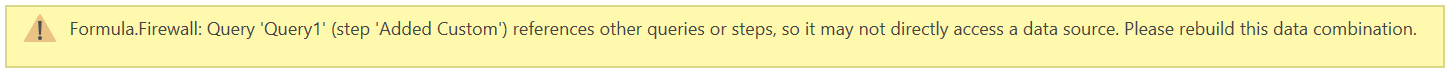 When combining or merging data between multiple data sources, you might get a Formula.Firewall error such as the one shown in the following image.