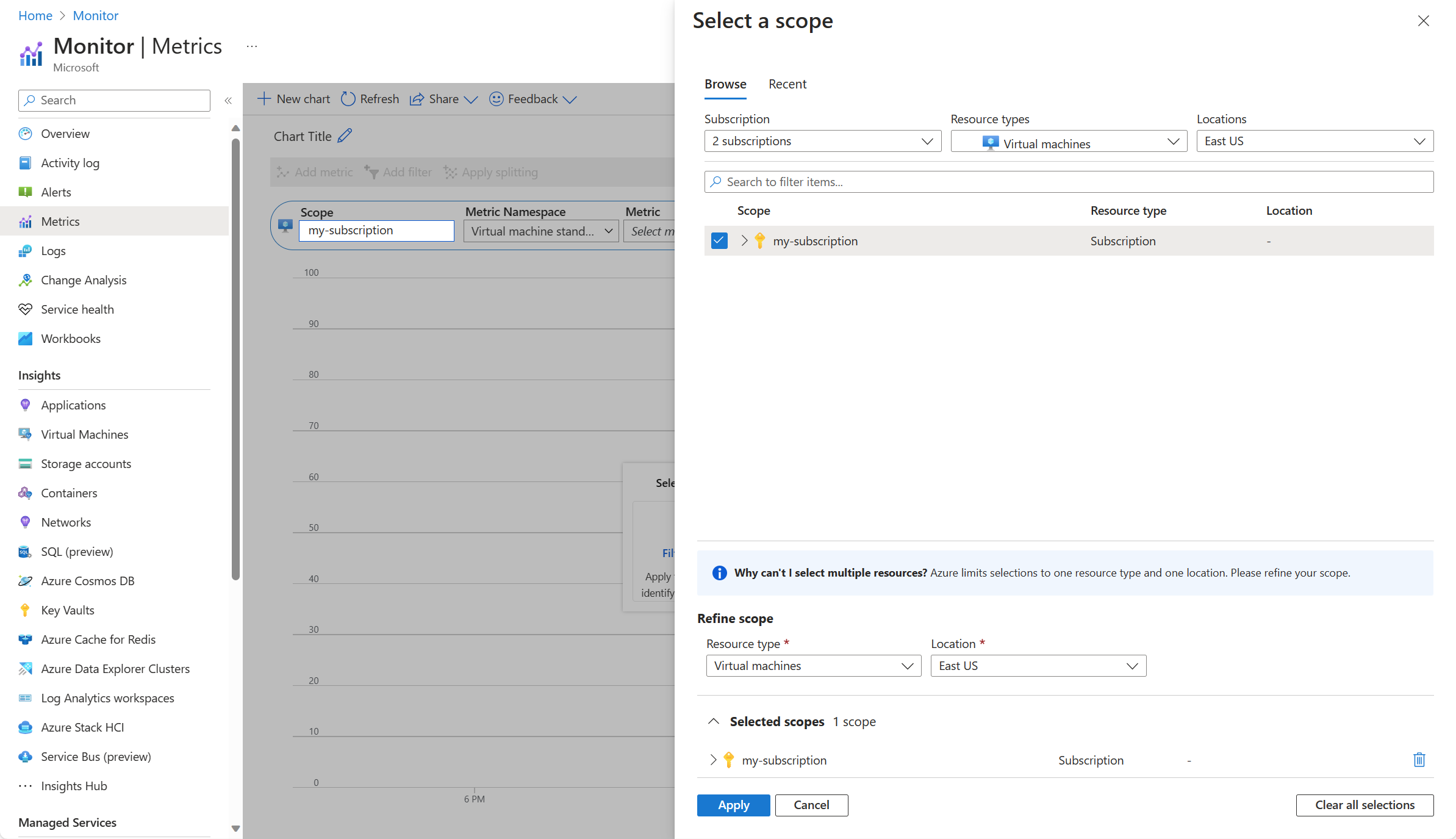 Click Apply to set the scope for metrics explorer.